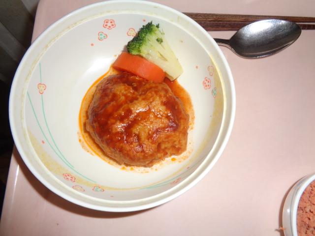 手づくりの煮込みハンバーグです。トマトソースがしみっしみです。