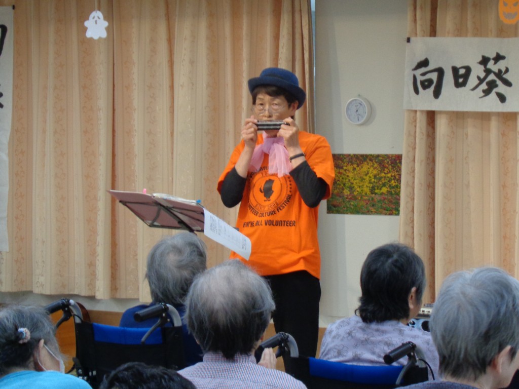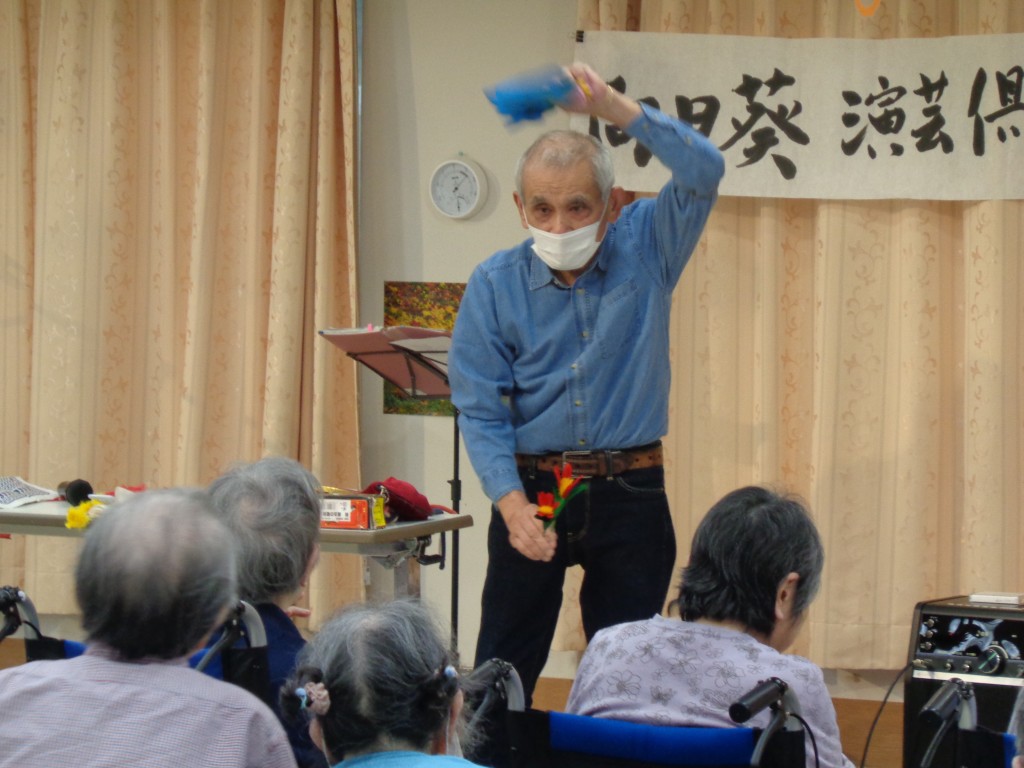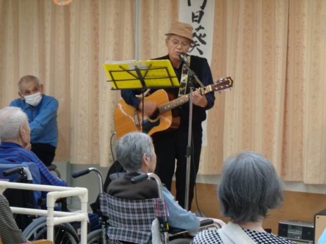19日(日)に来てくださり、唄やハーモニカ・ギター・手品など
