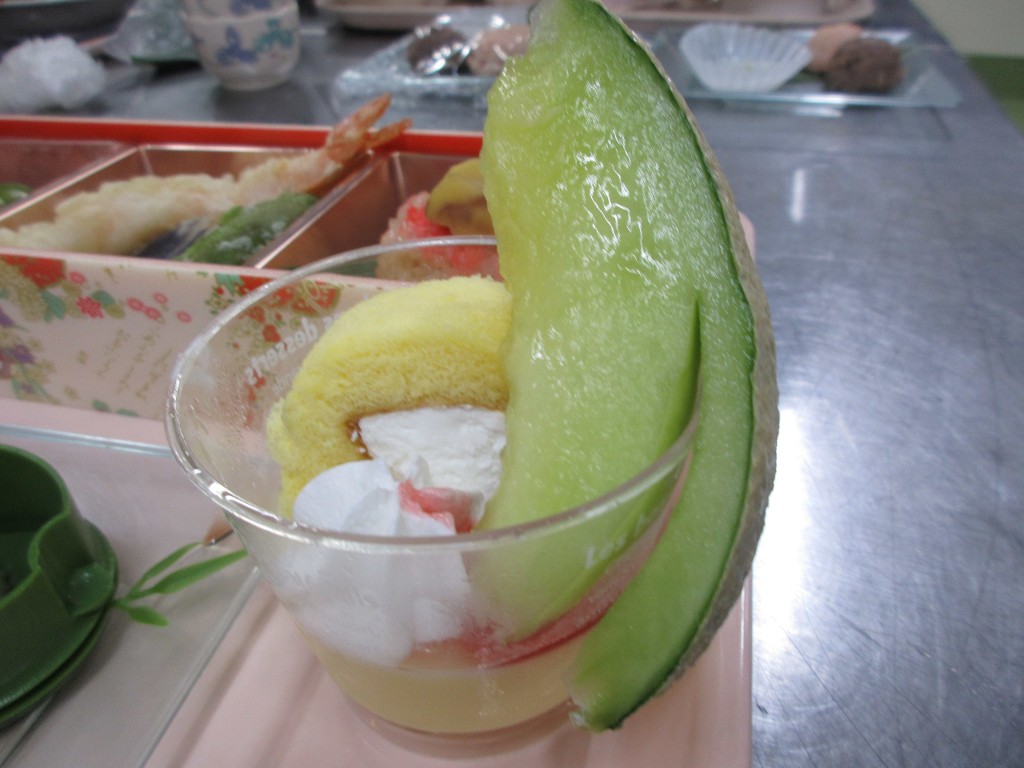 今回は、フルーツパフェ風のデザートを作りました。職員の素晴らしい演出に感謝です。