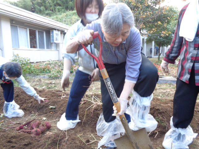 獲れたお芋は、レクリエーションの時間に蒸かしたり焼いたりして