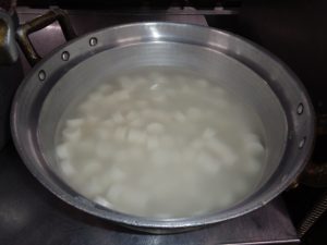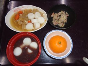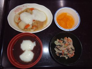 お年寄りの施設なので、本格的な餅ではなく、くっつきにくく飲むこみやすく加工されたものやこちらで作っています。